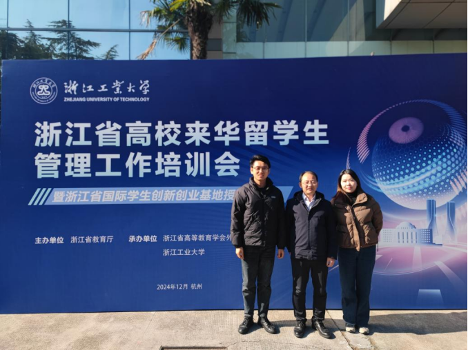 17日,由浙江省教育厅主办的省高校来华留学生管理工作培训会在浙江工业大学举行,我院院长柴志贤、留学生管理办公室主任汪博林、教学秘书陈勃静参加了本次培训会。