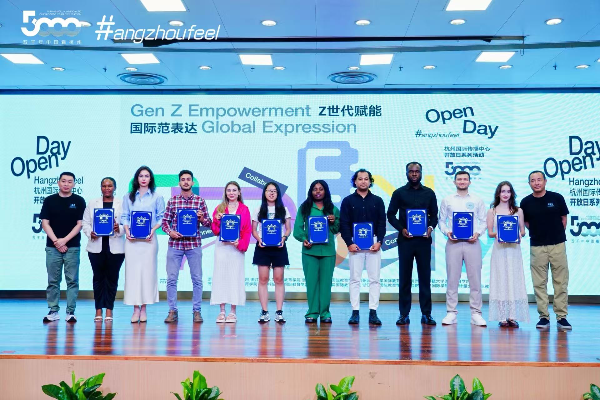 活动现场,杭州国际传播中心为优秀Z世代留学生代表颁发“杭州海外播报官”聘书,并与11所高校联合成立“在杭高校国际传播协作体”。这场以高校为翼、以传播为桥的创新实践,正推动杭州故事以丝绸般温婉的东方美学、科技前沿的创新锐度、Z世代的青春活力,跨越山海抵达世界舞台,谱写城市与高校协同讲好中国故事的新篇章。