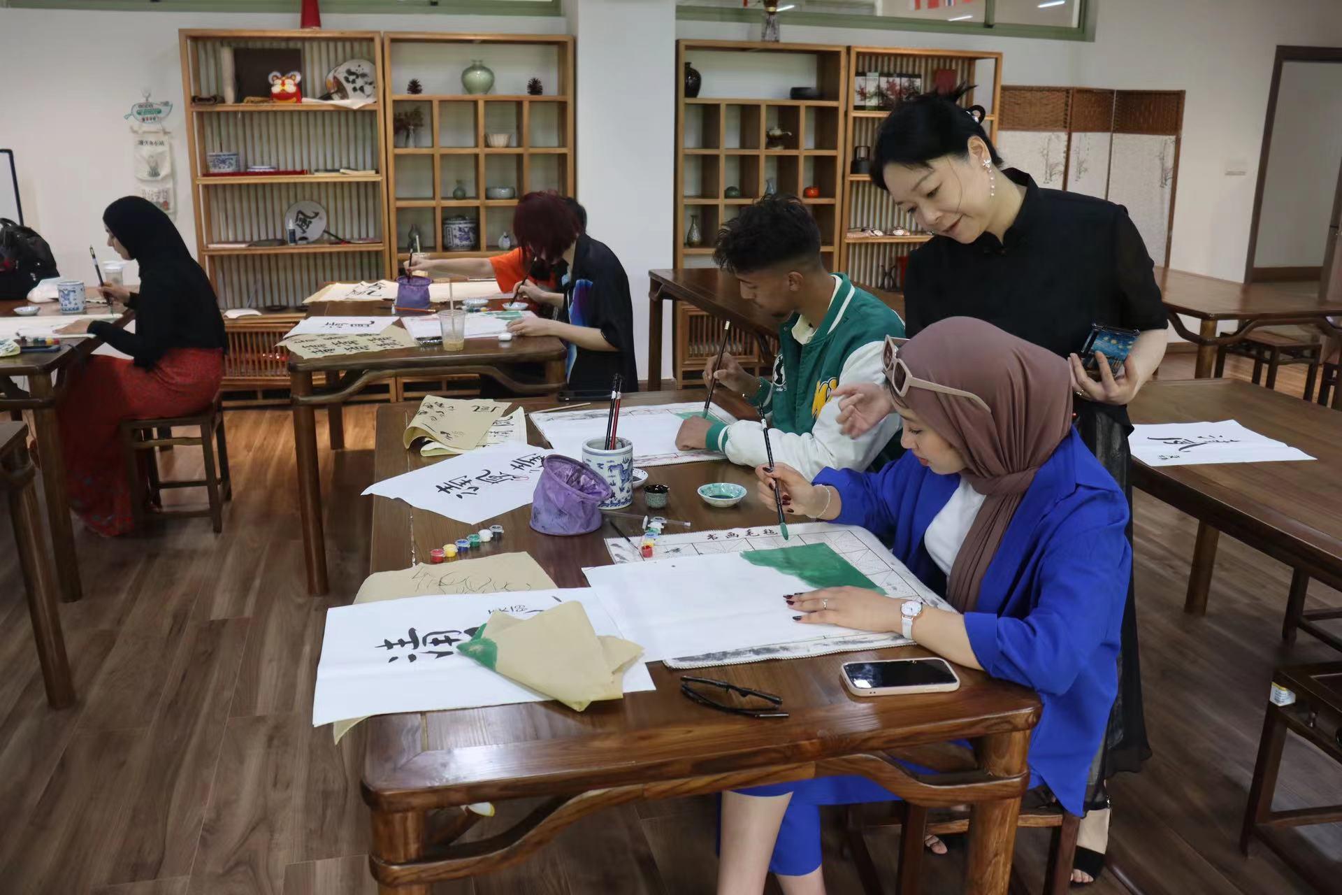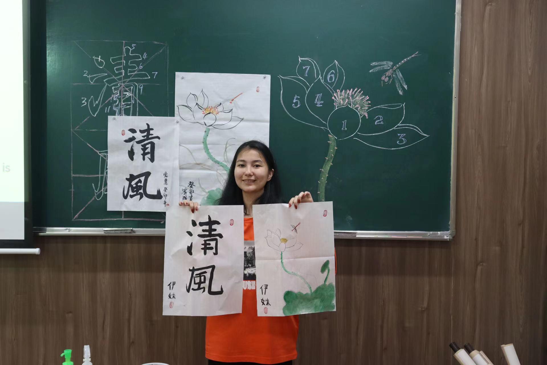 本周,国际学生们也同步开展了“清风莲语”主题书画课,师生们相互学习,通过书法、水墨画的形式精心描摹,用妙笔来勾画国际学生心中的“廉”。在老师的指导下,一幅幅清雅的书画作品应运而生。