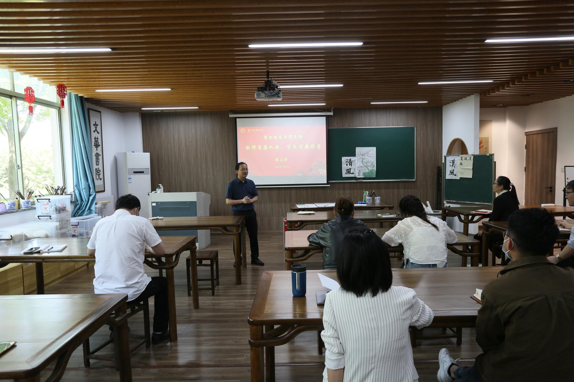 经信国创党总支委员、402cc永利院长柴志贤讲授题为“教师清廉从教,学生清廉修身”的警示教育专题党课,警示全体党员坚定职业信念与职业操守,确保清正廉洁,自觉地在教学、科研、社会服务等工作中遵守师德师风,营造风清气正的校园环境。
