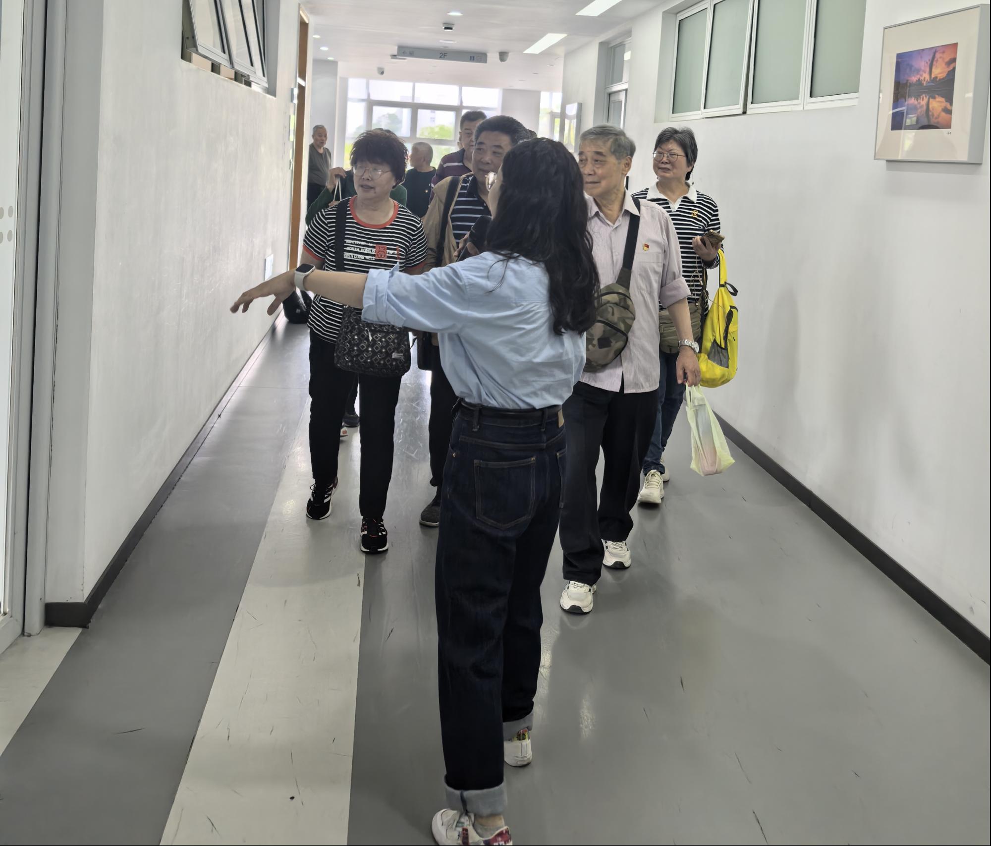 活动首先由数字化办公室、现代教育技术中心教育技术部部长骆靓婧带队参观智慧教室,详细介绍学校智慧教学环境建设成效。她介绍道,当前学校已系统性升级数字化教学条件,累计建成126间智慧教室、9个共享学习空间及156间标准常态化录播教室,构建形成网络全覆盖、线上线下深度融合的泛在化学习环境。这些信息化设施有效支撑校本资源库建设,助力常态化在线学习平台发展。老党员们亲身体验智慧教室的智能化教学场景,对学校教育信息化创新实践给予了高度评价。