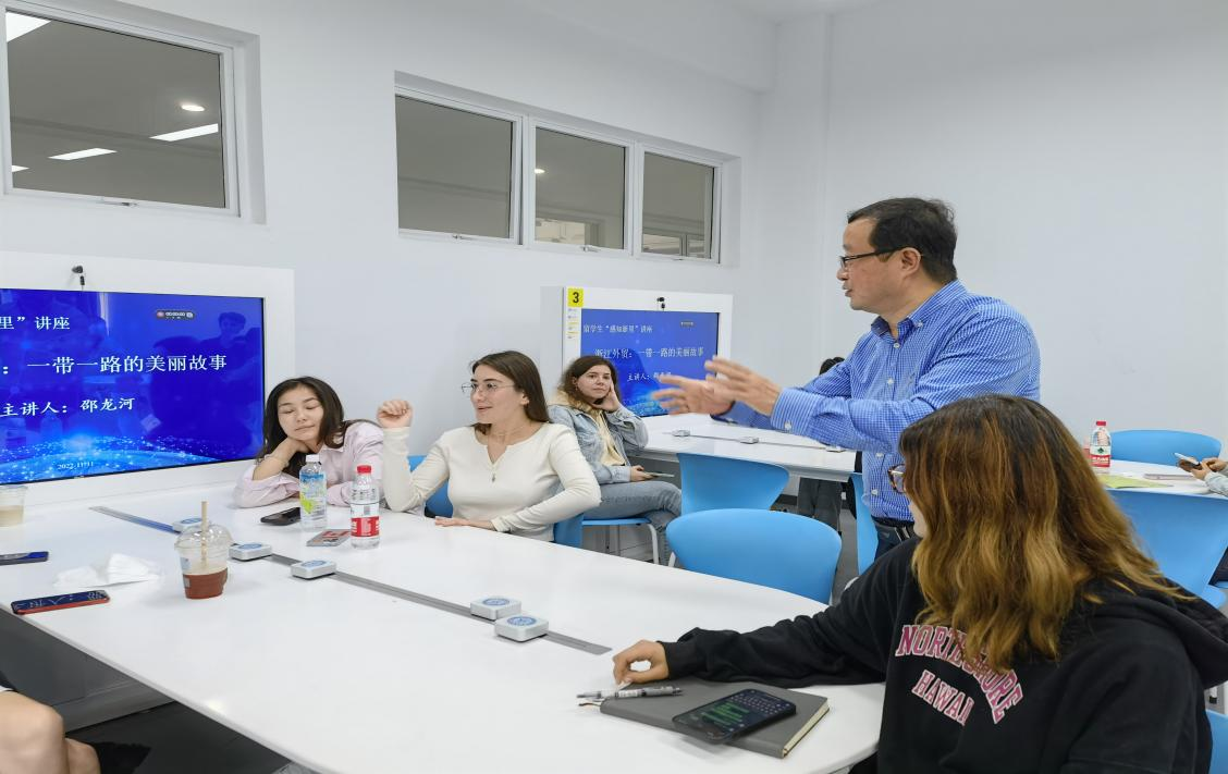11月11日,汇孚集团总经理邵龙河为我校国际学生作题为“浙江外贸:一带一路的美丽故事”的专题讲座。境内相关专业留学生认真聆听了此次讲座。