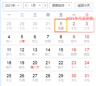 According to the relevant regulations of China and ZUFE Calendar, the New Year Holiday of 2021 is:January 1, 2021 (Friday), ONE day.