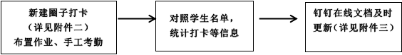 任课教师作为课堂考勤的第一责任人,应严格落实课堂考勤制度,认真做好考勤记录,及时汇总考勤情况,定期公布考勤结果。各任课教师要根据课程实际情况,采取点名、抽查、课堂提问、布置作业、钉钉圈子打卡、导出钉钉直播数据等多种形式进行课堂考勤,并在课程考勤名单(钉钉在线文档)中及时更新,保证考勤数据的客观性和准确性。