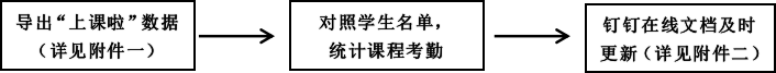 任课教师作为课堂考勤的第一责任人,应严格落实课堂考勤制度,认真做好考勤记录,及时汇总考勤情况,定期公布考勤结果。各任课教师要根据课程实际情况,采取“上课啦”点名、课堂提问、布置作业等多种形式进行考勤,并在课程考勤名单(钉钉在线文档)中及时更新,保证考勤数据的客观性和准确性。