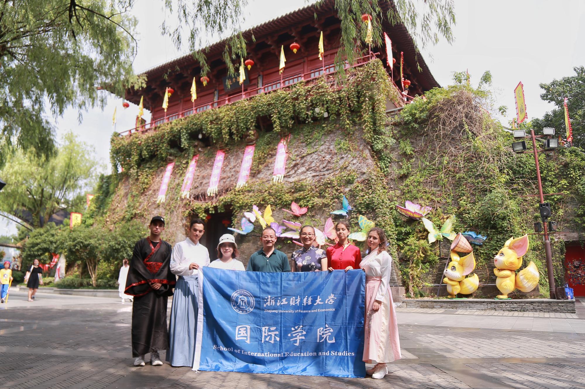 近日,402cc永利组织我校数名中外学生赴宋城景区参观,并进行“汉语桥”实地直播课堂录制。